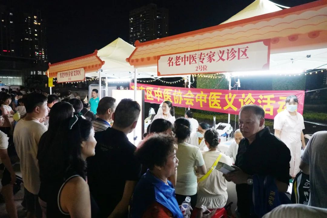 晚上7时许,文化广场上早已人头攒动,烟火气氤氲着草药香,“潘茂名”中医药健康夜市设置舞台表演区域和7大中医药特色区域和如织的人潮交汇成“中医药盛会”。