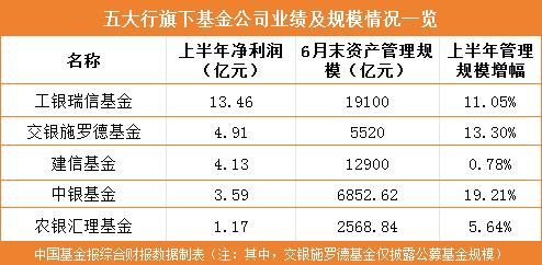 五家大行旗下基金公司业绩情况随之披露,综合来看,五家基金公司上半年均实现盈利,管理规模也实现不同程度增长。