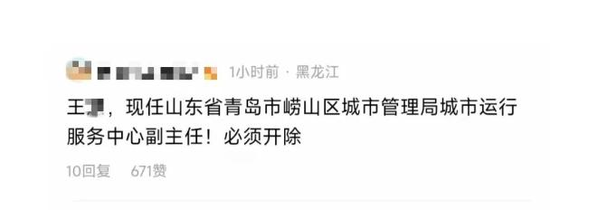 随后,关于打人女子为崂山区城市运行服务中心副主任王某的消息也在网上流传开来,引发热议。