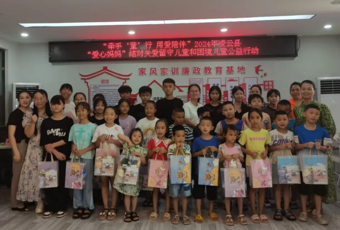 为深化开展牵手“童”行—爱心妈妈结对关爱留守儿童和困境儿童三年行动,8月28日上午,县妇联联合民政局、县阳光社会工作服务中心开展凌云县2024年牵手“童”行—爱心妈妈结对关爱留守儿童和困境儿童活动。