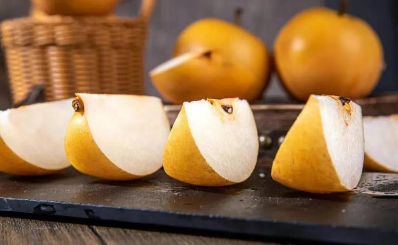 秋月梨,如羊脂玉般晶莹剔透的雪白果肉,松脆、酥口,秋水般软嫩无渣的神仙口感,秋月梨果核极小,可食用率达95%,胖胖的身子里几乎全是果肉,啃起来非常过瘾,只要吃过一口,就会一整年都盼着它来,有着“吃一口,馋一年”的美誉。