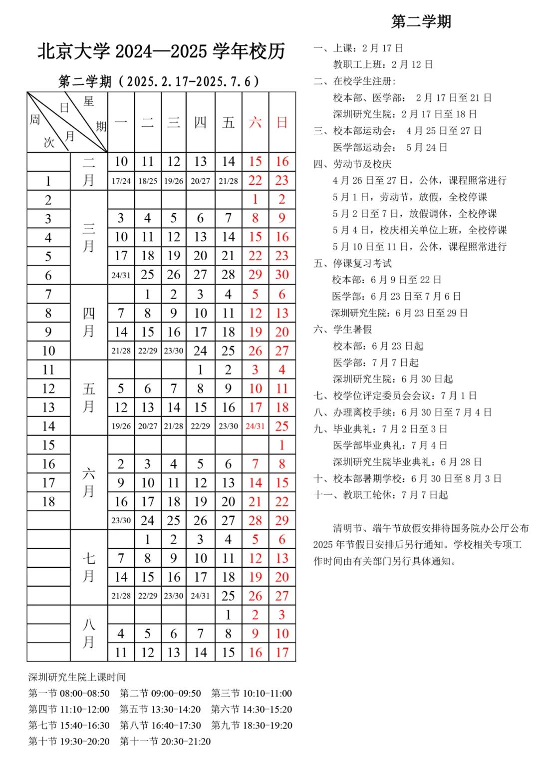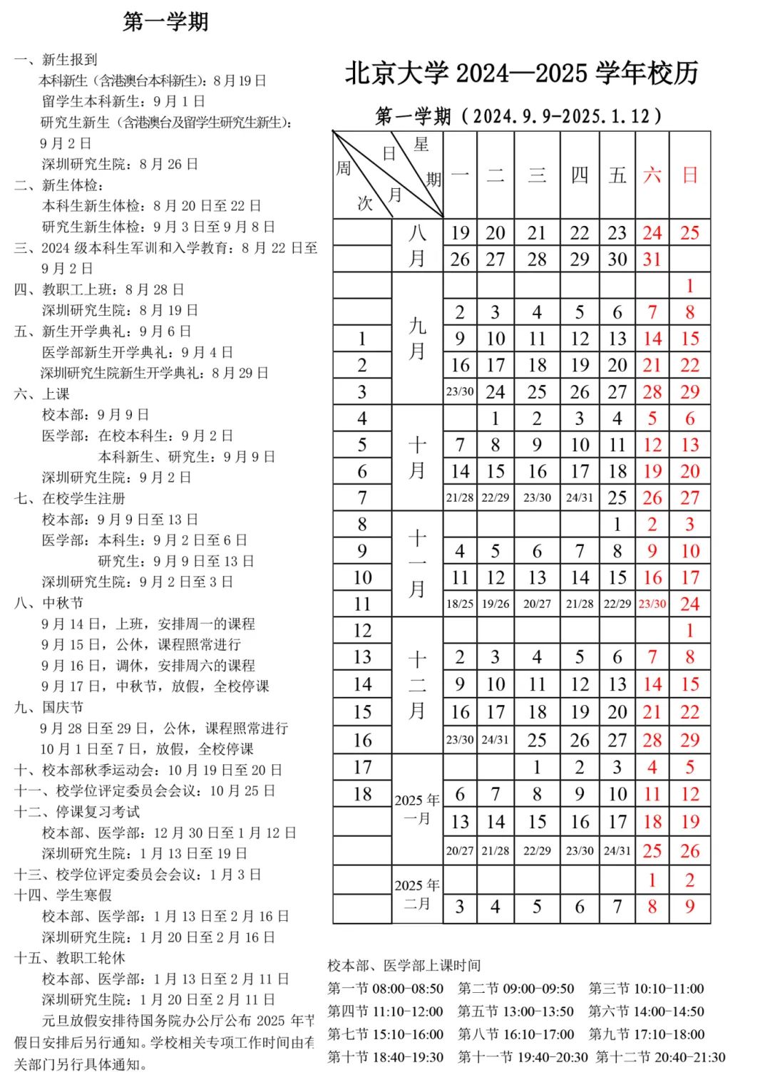 北大2024-2025学年校历