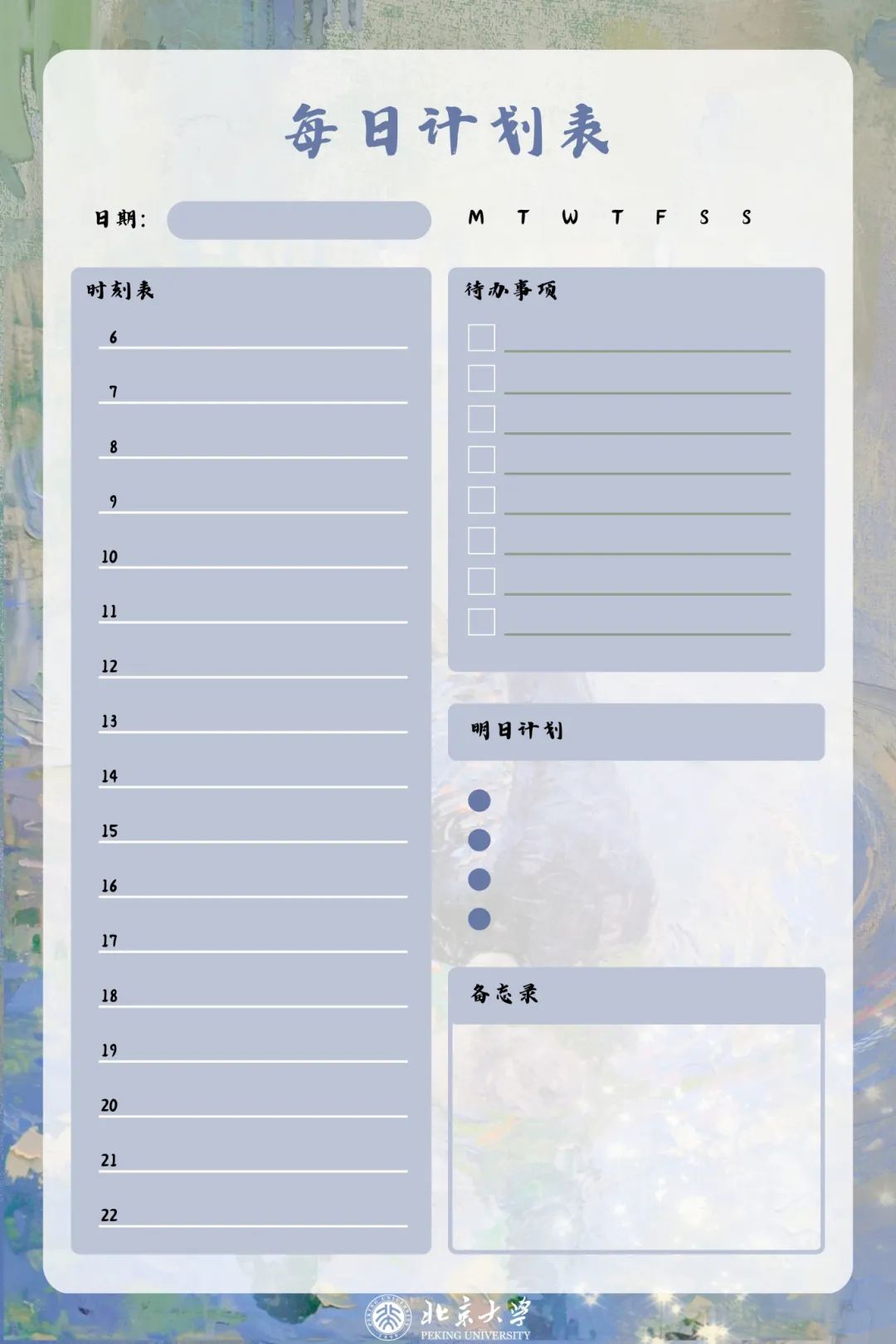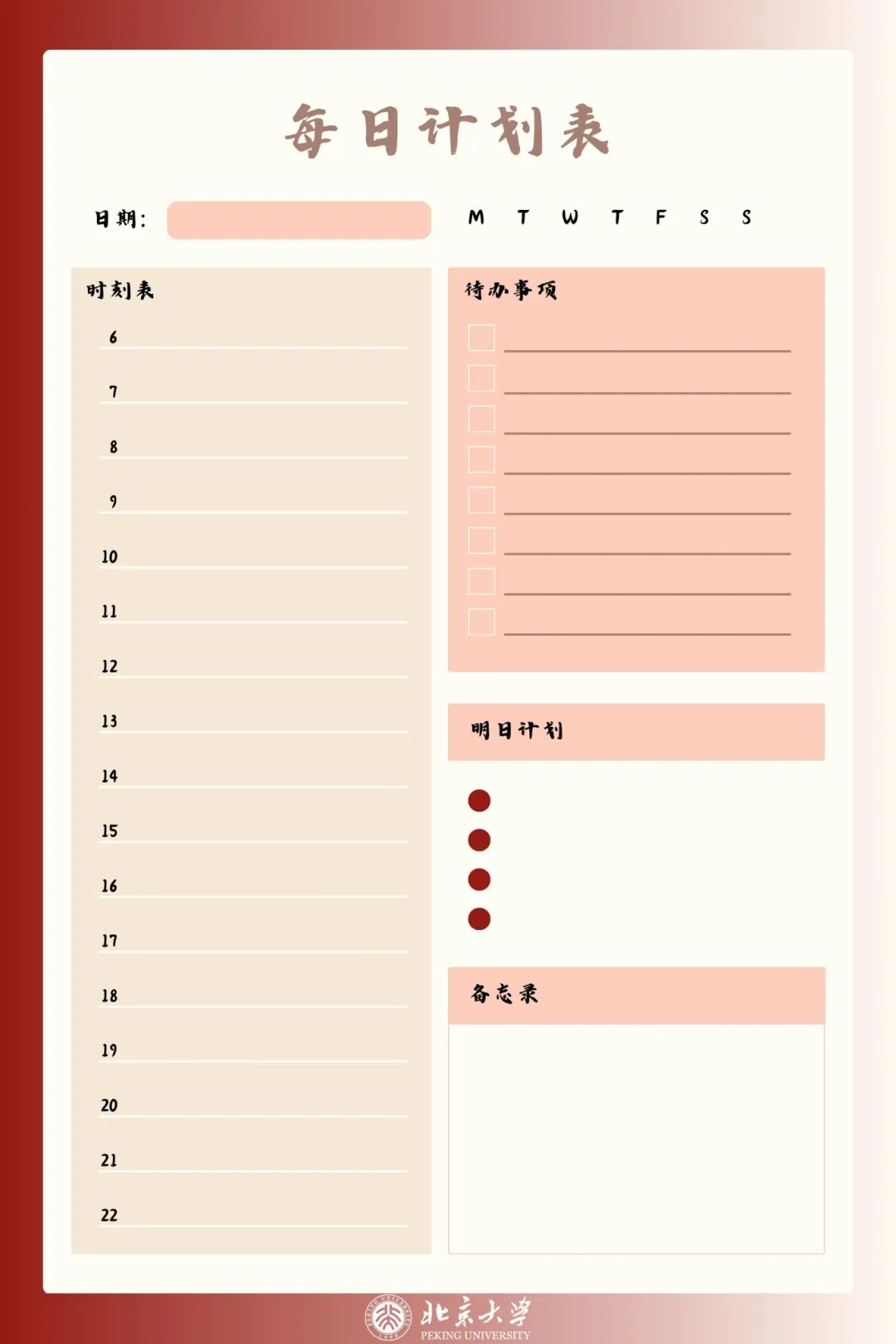 与北大特制版计划表、日历表