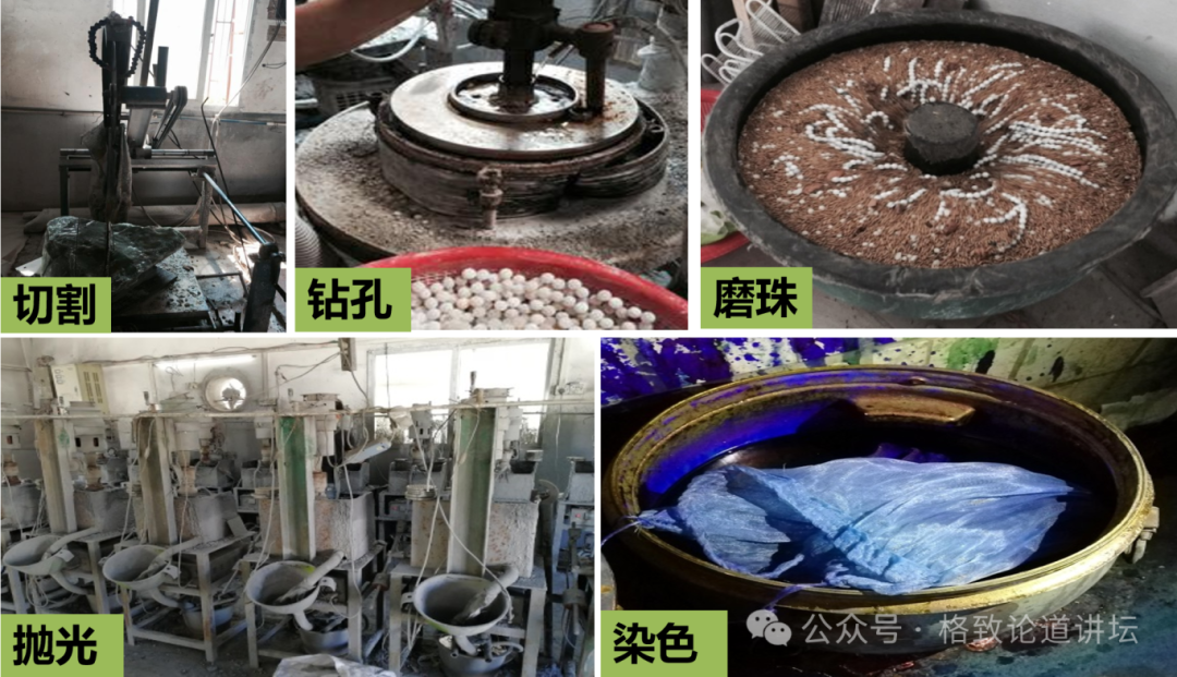 目前广东大约有7个宝玉石加工集散地,其中位于惠州博罗四角楼的加工集散地是广东最大的彩宝加工地。有1000多种来自世界各地的宝石在这里经过加工以后,又销售到全国各地。据不完全统计,在全世界有80%左右的珠宝珠链产品都来自四角楼。
