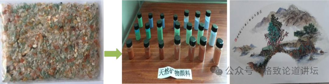 所以,一些当代的大画家都会去日本买昂贵的矿物颜料作画,但是,进口的矿物颜料非常昂贵,如果我们能从这些固废里面分离出有价值的矿物产品,把它制成矿物颜料,那普通学生也都能够用上这种颜料了。