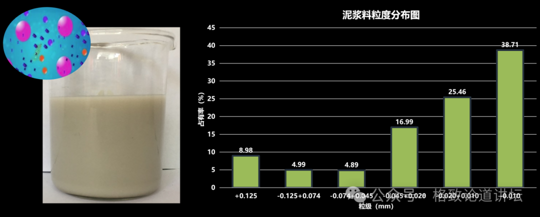 结果发现,像这杯“牛奶水”一样的泥浆废水里,其实含有大量的微细粒子。我们当时取样的这杯废水里面超过38%的粒子粒径在0.01毫米左右。这些粒子有什么特点呢?它们会在水介质里面形成一种胶态的稳定状态,在自然沉淀的情况下很难澄清,就像我们平时喝的牛奶一样。
