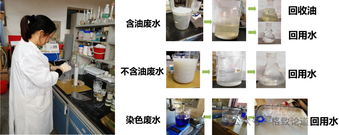 放在实验室里的这杯水已经几年了,它都没有自然沉淀下去。现在园区的一些小作坊会直接把这些水稍微沉淀一下,回用到生产中。