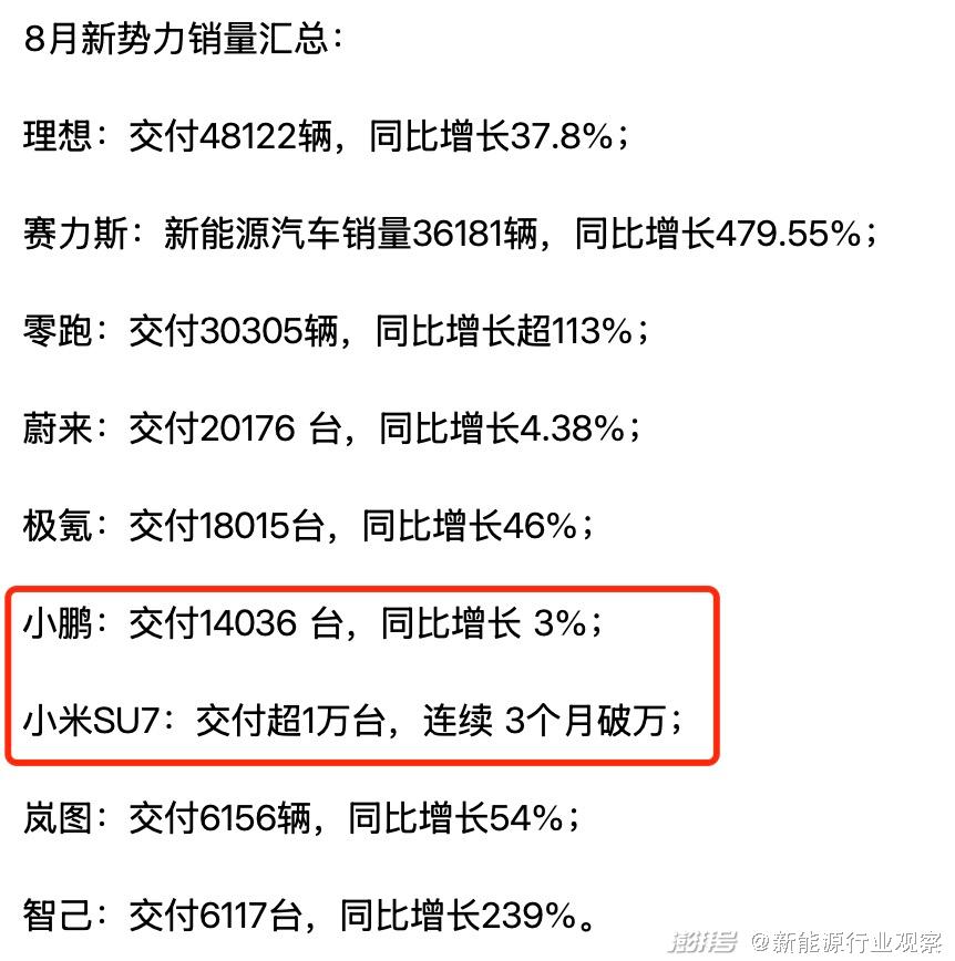图/2024年8月小鹏与小米销量