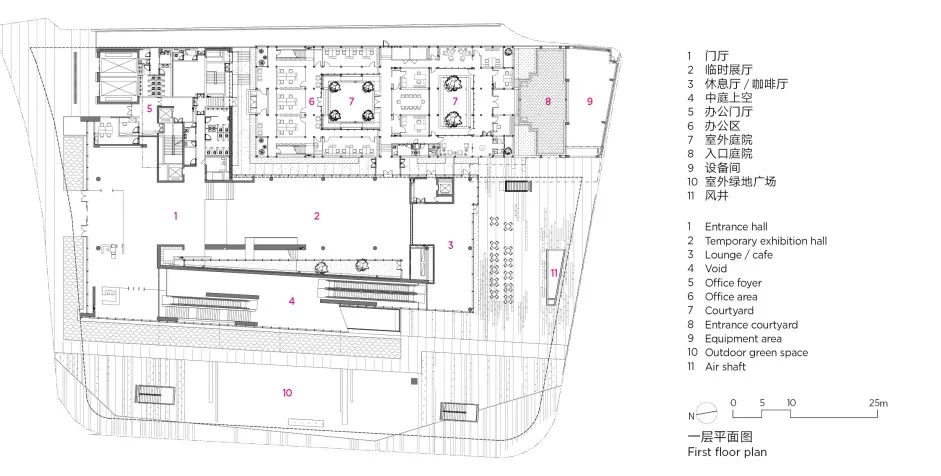 一层平面图○ 与强烈的引导性相对,城墙博物馆的另一个空间营造策略是留白。