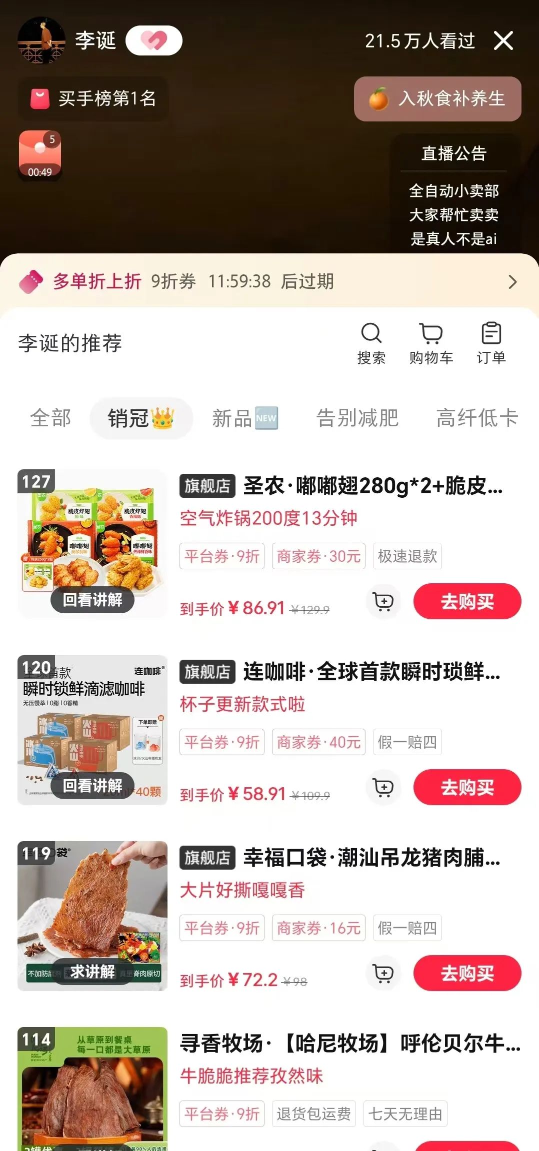 但事实上,与李佳琦、董宇辉等主播单场直播GMV动辄过亿的销售实绩相比,李诞的直播间看上去只是虚火。