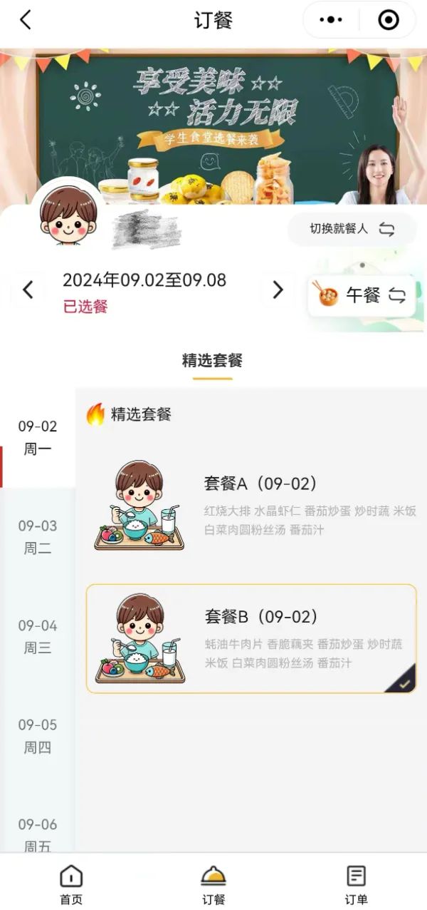 AB选餐:每餐至少提供两个套餐备选