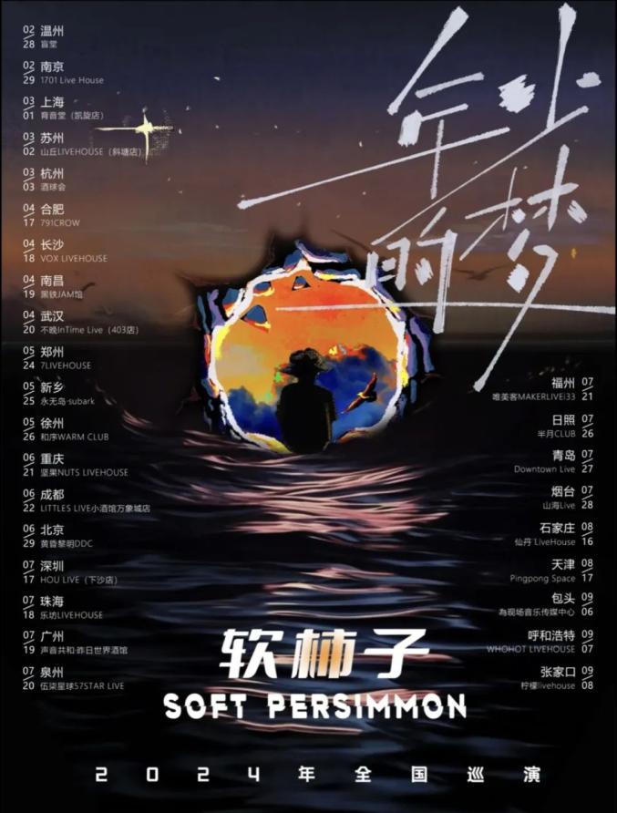 软柿子乐队2024巡演《年少的梦》呼和浩特站丨时间丨9月7日/20:00