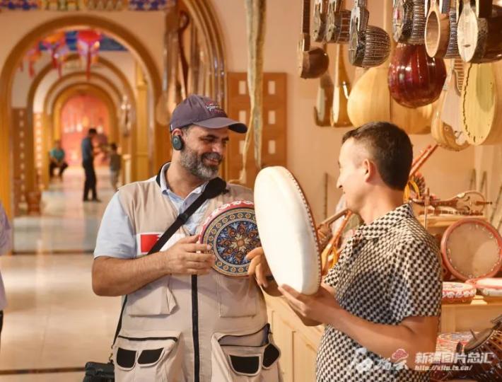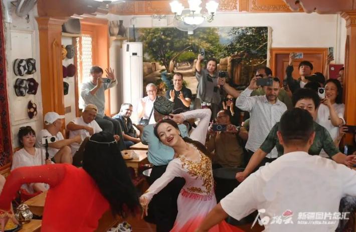 参访团成员用镜头记录了喀什古城的种种精彩,品味了独具特色的新疆美食,与“中国新疆民族乐器村”的群众通过音乐和舞蹈进行交流。