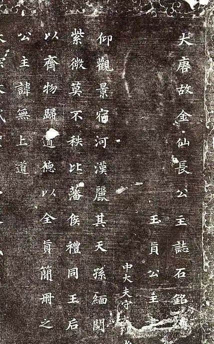 玉真公主书 大唐故金仙长公主志石之铭(局部)玉真公主于景云二年(711)入道,曾拜著名道士司马承祯为师,睿宗还修筑玉真观供公主修道。不过,准备专门的修道场所并不意味着她必须一直守在玉真观内,与我们的想象恰好相反,玉真公主作为贵族女性修道者,竟然拥有相当大的行动自由,完全可以脱离宫禁,甚至干脆离开长安。