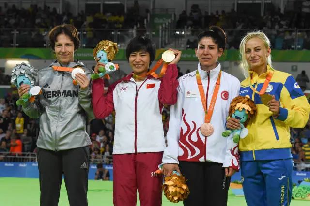 2016年9月里约残奥会,李丽青(左2)获得女子48公斤级冠军(图源:新华社)李丽青的自强不限于赛场上,积极备赛参赛的同时,她不忘学习探索。2018年,她报读了东莞开放大学社会工作专业。2020年,获得专科毕业证后,她继续攻读东莞开放大学的行政管理本科,并在2023年顺利考上广州体育学院运动训练专业研究生。李丽青说:“我想圆一个大学梦。”