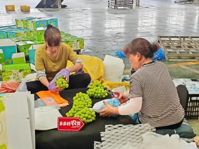 ▲ 工人们正在为从外地收购的“阳光玫瑰”打包。小年轻,有想法有魄力