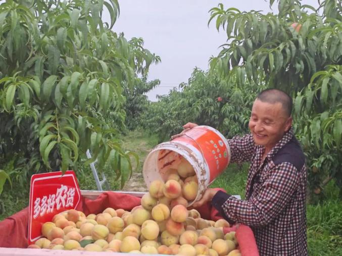 ▲ 一个个又大又脆的桃子,是农民们的幸福生活。如今,董晨旭的店铺在拼多多上已经拥有了稳定的销量和良好的口碑。他每天忙碌于发货、装箱等事务之中,虽然辛苦,但看到那些精心挑选的水果被送往全国各地时,他的心中就充满了满足和自豪。