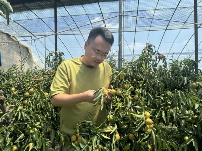 ▲ 王俊晰在地头采摘冬枣。为了自己让家乡水果通过电商销往全国的梦想,王俊晰辞掉了城市里稳定安逸的工作,回到临猗县庙上乡,创立了山西九穗嘉禾农业有限公司,决心以全新的姿态开启一段新的旅程。