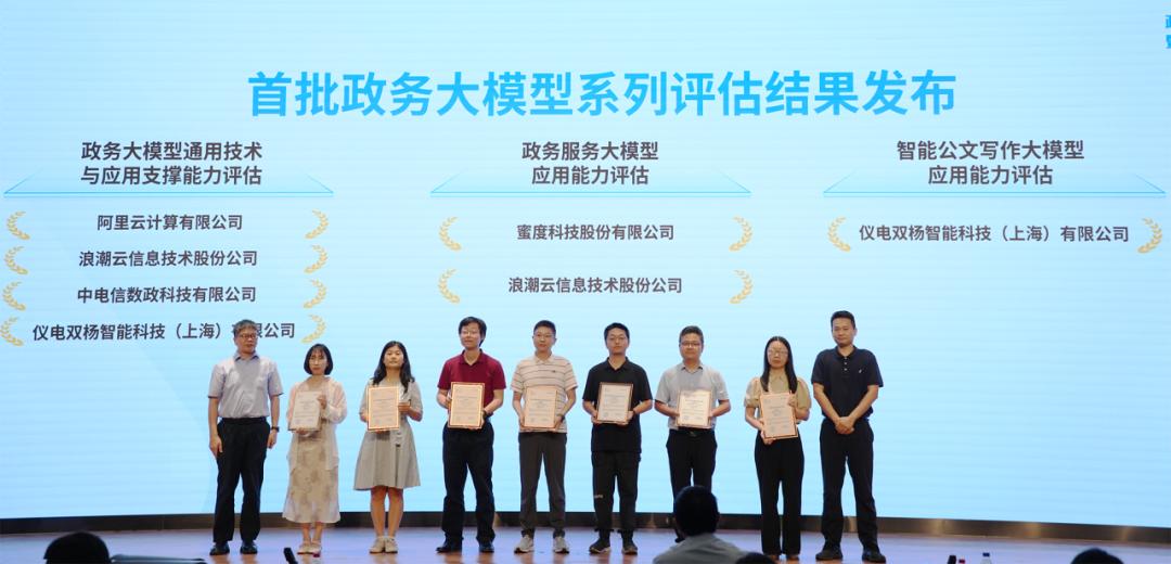 会上公布了2024上半年政务大模型评估结果,共有来自7家企业的政务大模型产品通过评估。已完成政务大模型系列评估的企业