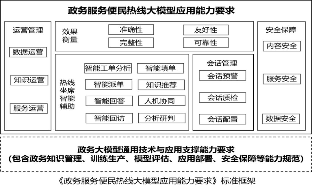 评估范围政务服务便民热线大模型应用能力要求规定了政务服务便民热线大模型应用能力框架要求,包括5方面:一是热线坐席智能辅助能力,二是会话管理能力,三是效果衡量能力,四是运营管理能力,五是安全保障能力。