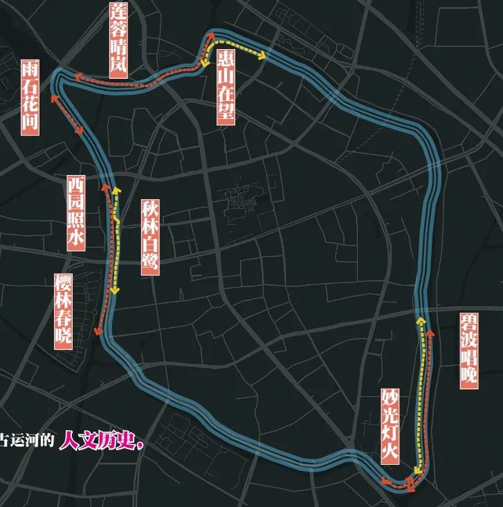 正在建设中的环城古运河慢行系统北起江尖大桥,南至跨塘桥,全线长约8公里。梁溪区文旅集团相关负责人表示,将通过全线建设骑行道、跑步道、漫步道三道贯通的慢行交通系统,为市民和游客带去“一河两廊花间游”的运河新体验。