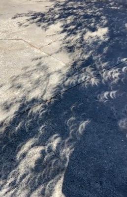 在日食期间,这种效应尤为明显。如果你在树下,你会发现地上的光斑都变成了月牙形,仿佛树叶变成了无数的小镜头,将天空中的奇观投射到地面上。