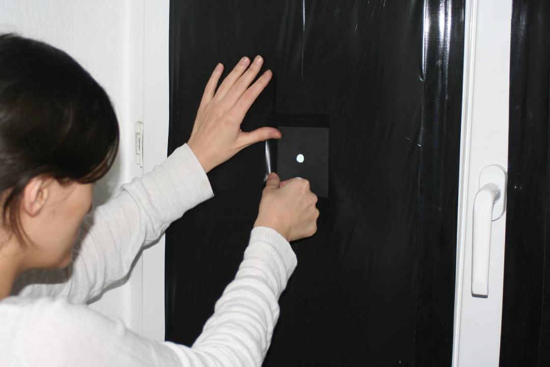 有人在网上做过一个教程,用黑色垃圾袋封住窗户,只留下一个小孔(直径大约5cm)。