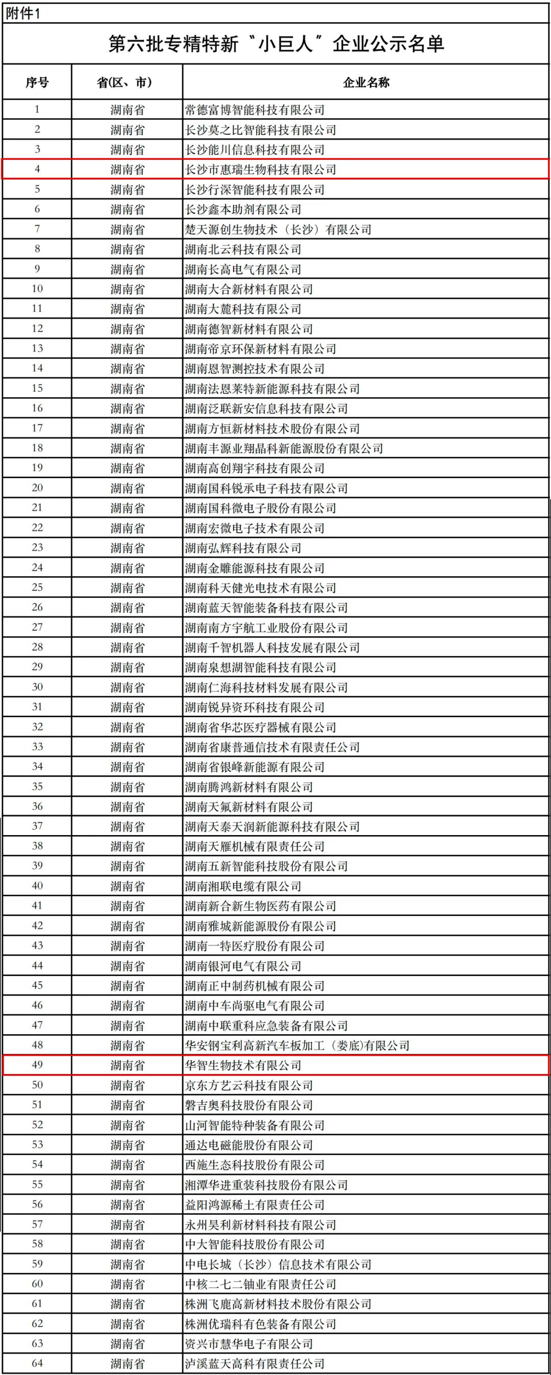 专精特新“小巨人”企业上新了!近日,工信部发布第六批专精特新“小巨人”企业公示名单,湖南有64家企业入围。其中,芙蓉区两家企业榜上有名,分别是长沙市惠瑞生物科技有限公司和华智生物技术有限公司。