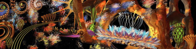 “光之城”属于幻鲨SKG+团队“万物精灵”系列。在色彩上,艺术团队使用了叠混的方法,每一种元素和图层都设计了数十种,利用动画软件中各种色彩计算的方法,进行层层叠加和融合。