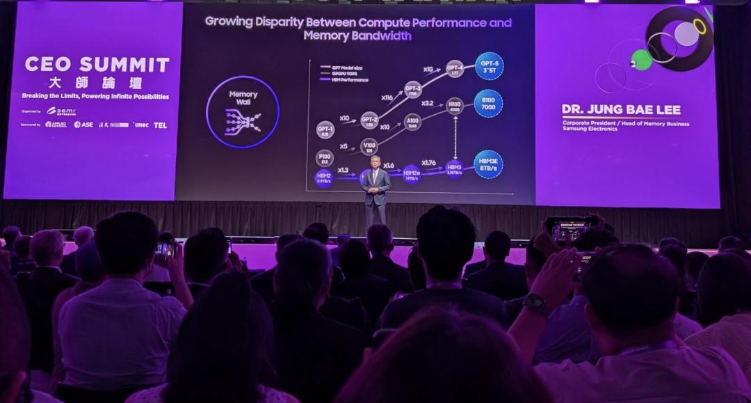 仔细看,这是三星高管Jung Bae Lee(李禎培)在一场高级管理层峰会(CEO Summit)上演讲。