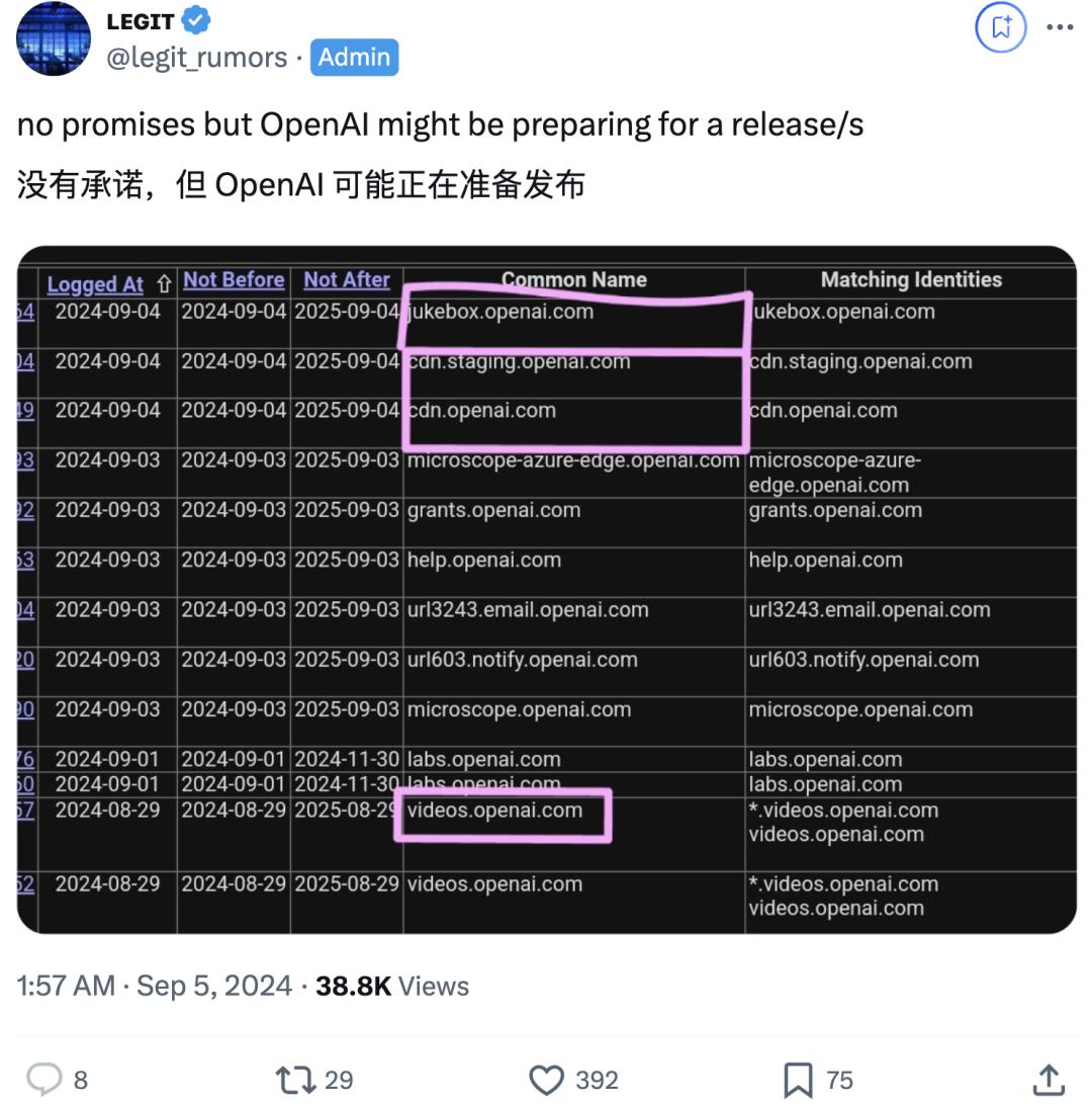 在往下看,8月29号似乎有一个新的关于“video”的域名,是Sora吗?