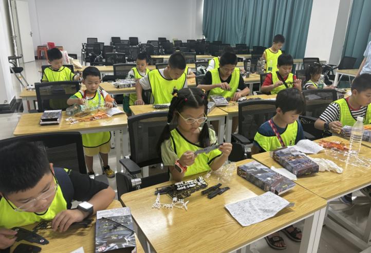 “中国空间站”体验拉开了青少年们的航天圆梦之旅,在裸眼3D的精美画面中,探索中国空间站的奥秘;“高铁模拟器”中,青少年们近距离观摩高铁驾驶,体会中国人自强不息追逐梦想的奋斗之路;“南海新岛”体验,让青少年坐上模拟器去看看镇守南海的四大人工岛屿,见识“基建狂魔”在南海造岛的硬核神器;“万吨大驱”体验中,青少年们在研学老师的带领下一起去追寻“全球海军的梦”,体验一把055型驱逐舰海上实战演习,充分感受中国科技的强大。在多种高科技的模拟体验下,青少年们近距离欣赏到大国重器的魅力,共同见证科技奇迹,在心中种下了一颗科技的种子。“飞行模拟挑战大赛”中,在研学老师的耐心讲解下体验了一把开飞机的乐趣,感受了专业的飞行训练;飞行训练后,大家动手制作了属于自己的战斗机模型,耐心拼装下,一架架战斗机便呈现在了大家眼前,青少年们在轻松愉快的氛围中学到了知识,增加了信心。