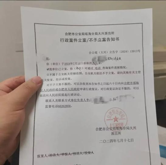 ●朋友报警后的立案通知 讲述者供图一位曾经的特训学校心理老师