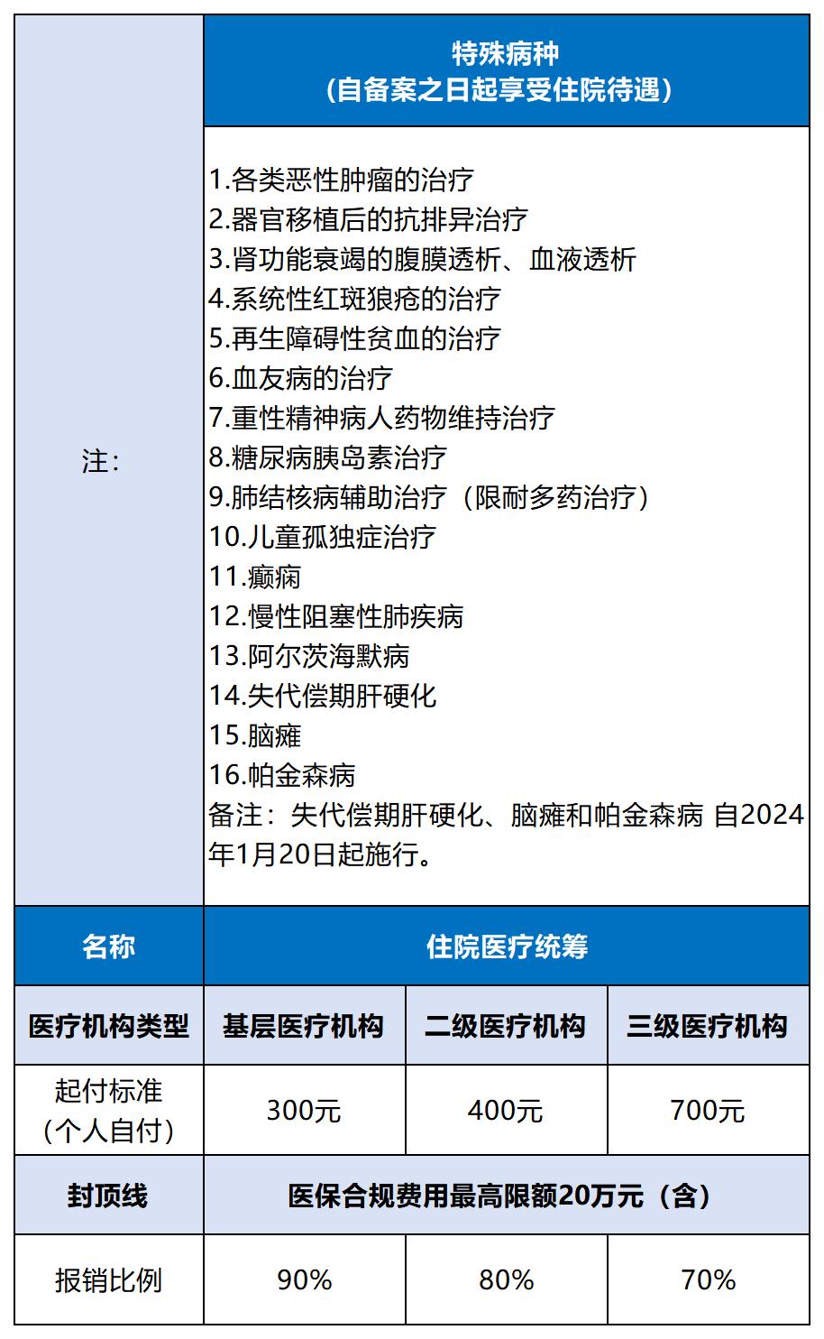 住院待遇参保人员到温州市内三级医疗机构住院或特殊病种门诊治疗的,医保目录内费用先由个人负担700元,累计700元至20万元部分的费用按70%报销。