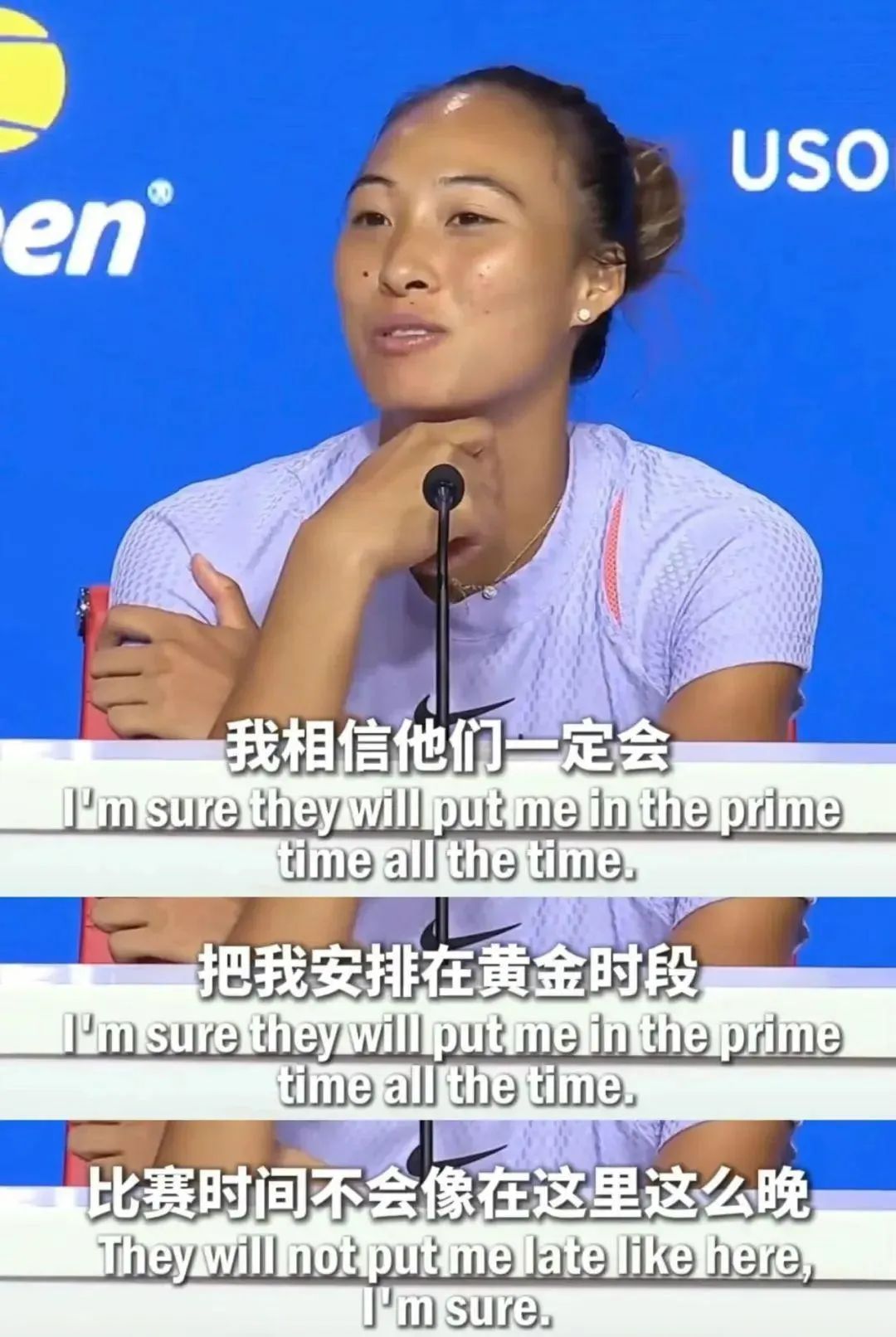 谈及10月举行的武网,Queen Wen郑钦文立马变得温软可爱,她表示:“我敢肯定,他们会一直把我安排在黄金时段打比赛的。他们肯定不会像美网一样把我的比赛时间安排得这么晚。”