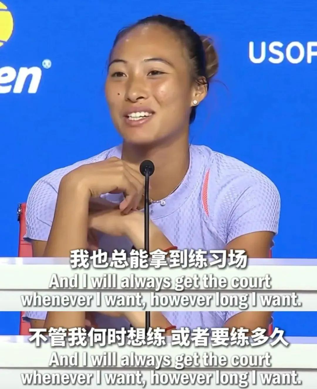 赛后采访中郑钦文温柔“告状”
