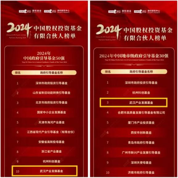 2024年,武汉基金先后获评母基金中心、母基金周刊、中国风险研究院等权威机构颁布的“最佳引导基金”及“最具影响力引导基金”等荣誉,行业影响力与日俱增。此次最新上榜,更是行业对武汉基金近年来精准投资布局的高度认可,也是对武汉投资环境和投资机遇的充分肯定。