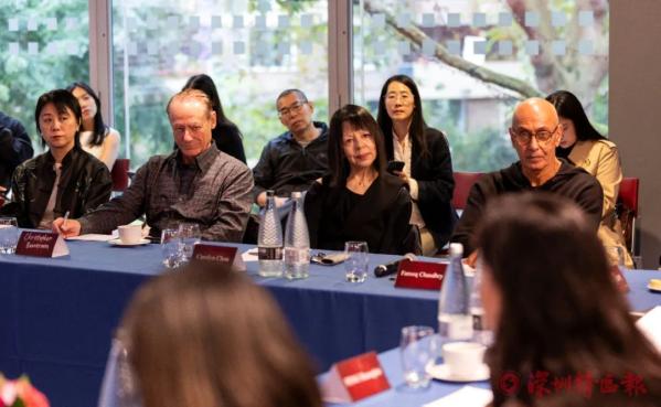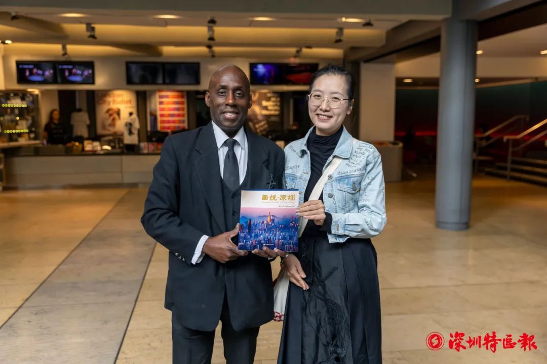 深圳特区报特派记者刘莎莎向英国观众莫里斯赠送《画说深圳》。至此