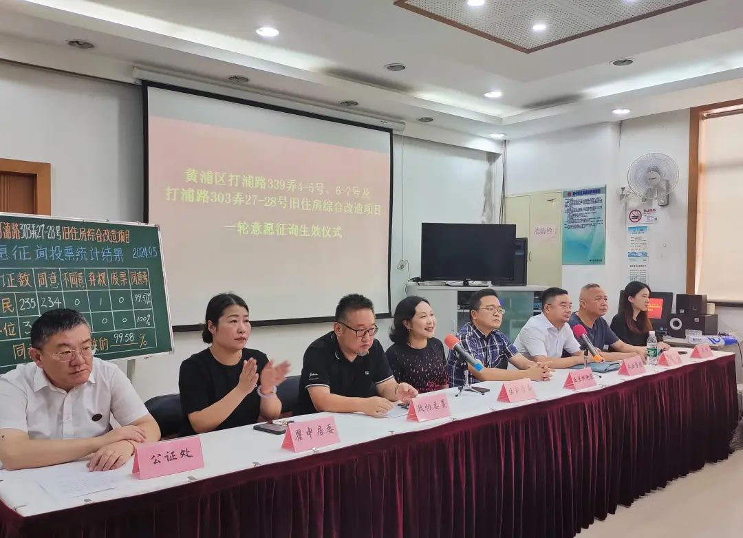 9月5日上午,打浦路339弄4—5号、6—7号及打浦路303弄27—28号旧住房综合改造项目办公室内传来阵阵欢呼声,该项目一轮意愿征询以99.58%的高比例通过。