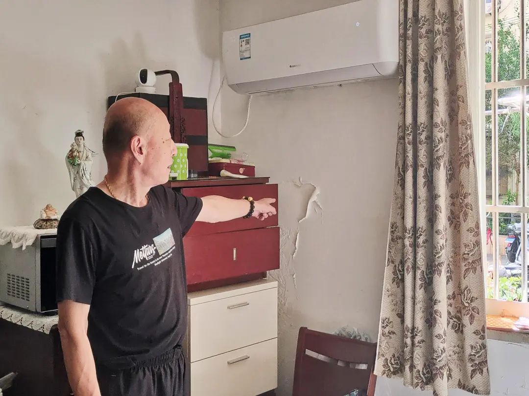 “房龄太长,这个墙皮一碰到水就酥了。”胡耀明指着家里的天花板告诉记者,有次他正在桌上吃饭,天花板上的墙皮,竟然大块就掉进了菜碗里,让他至今记忆深刻。“房子底子差,我再修补也没用。这次有嘎好的改造机会,阿拉一定要抓牢。”