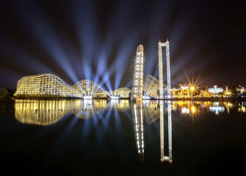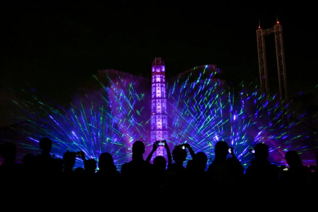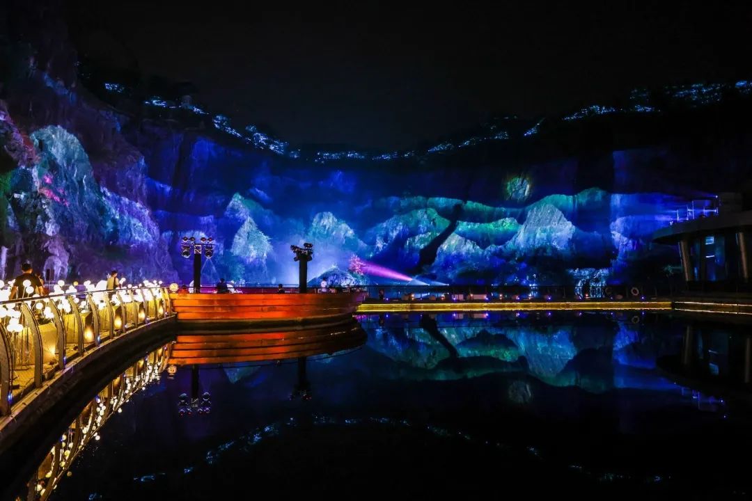 大型实景水秀《天幕水极》以中国神话为背景,通过水幕、喷泉、激光和焰火等多种元素,呈现出一场全感官的震撼体验。