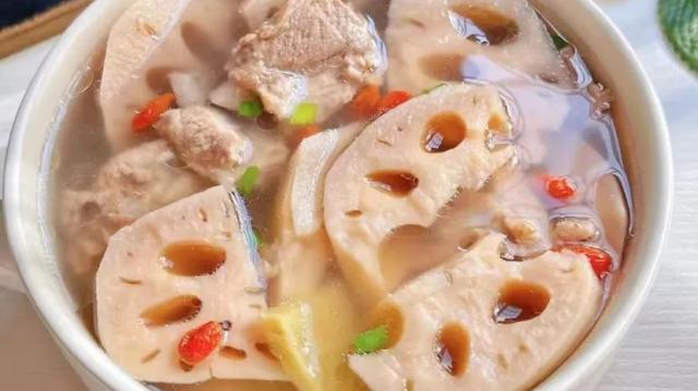 莲藕排骨汤食材:莲藕1节,排骨300克,红枣6个、枸杞适量、生姜少许。