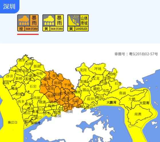过去3小时,罗湖区、龙华区和龙岗区(布吉、坂田、南湾、平湖、吉华街道)已出现强降水,预计未来3小时还将出现30-50毫米降水,深圳市气象台2024年09月07日08时51分在上述区域发布暴雨橙色预警信号,全市进入暴雨防御状态,请远离低洼易涝等危险区域,上述区域山洪风险较大,注意防御暴雨可能引发的局部内涝、山洪、滑坡、泥石流等灾害。