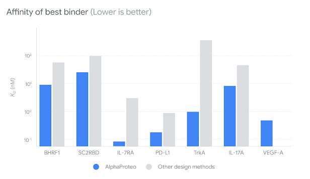 AlphaProteo 的性能表明,它可以大大减少涉及广泛应用的蛋白质结合剂的初始实验所需的时间。