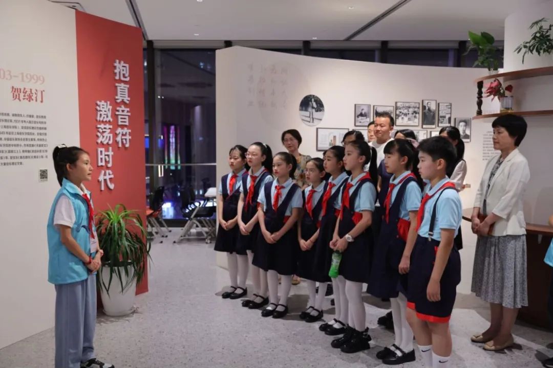 活动现场适逢徐汇区新时代文明实践“美育大课堂”之“梧桐树下的师者——追寻上海社科大师的徐汇足迹”特展开展期间,其中,展出的教育理论家廖世承、孟宪承,会计学家潘序伦,哲学家、教育家、革命家彭康,作曲家、音乐教育家、音乐理论家贺绿汀等六位社科大师都曾在徐汇辖区内高校任教,他们是老师的老师,在教师节即将来临之际,由徐汇区新时代好少年担任的“小小社科宣讲员”用自己的童声,为可亲可爱的老师们把这些师者的故事、理论贡献以及人格魅力等进行了精彩的现场导览。