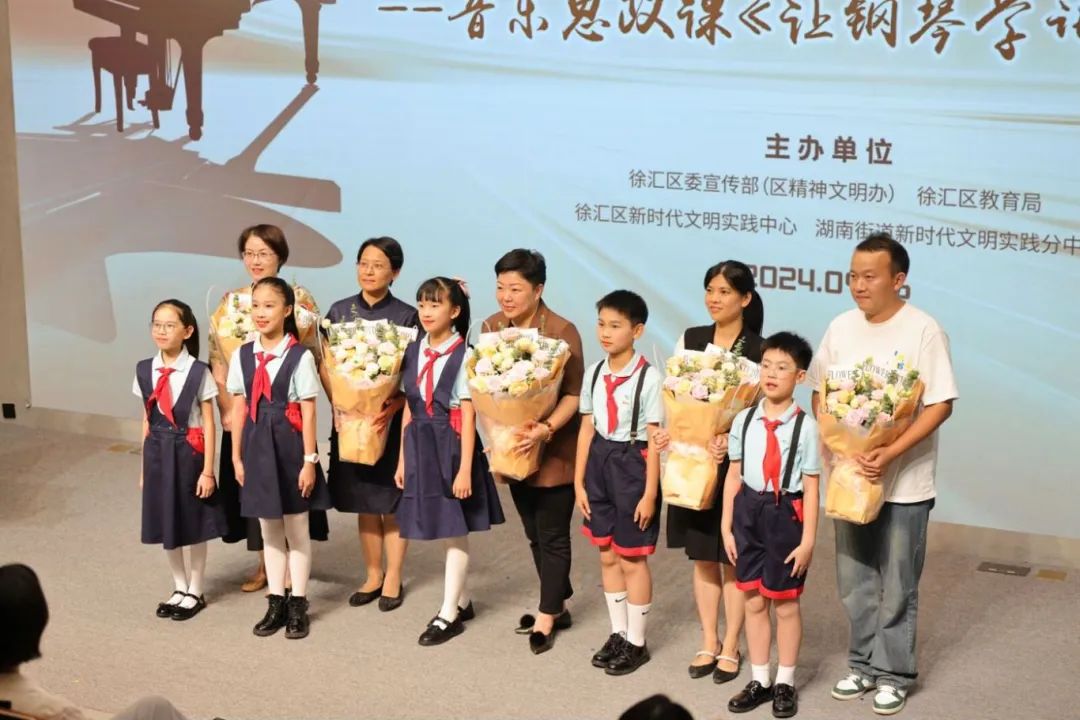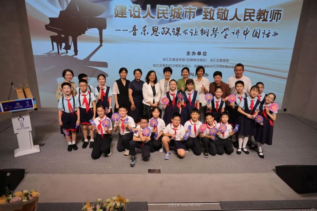 2024年9月10日是我国第40个教师节,结合徐汇区湖南街道新时代文明实践特色音乐街区“15分钟思政育人圈”建设,徐汇区委宣传部(区精神文明办)联合区教育局、湖南街道和上海音乐学院,9月6日晚,于徐汇区新时代文明实践中心,共同举办了“建设人民城市 致敬人民教师——音乐思政课《让钢琴学讲中国话》”徐汇文明夜课主题专场活动。区委宣传部、区教育局、湖南街道等相关人员,以及音乐街区共治委员会部分学校成员单位、徐汇区相关学校教师代表、上海音乐学院师生代表、湖南街道社区居民代表、徐汇区部分学生代表参加此次活动。