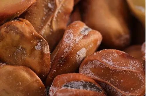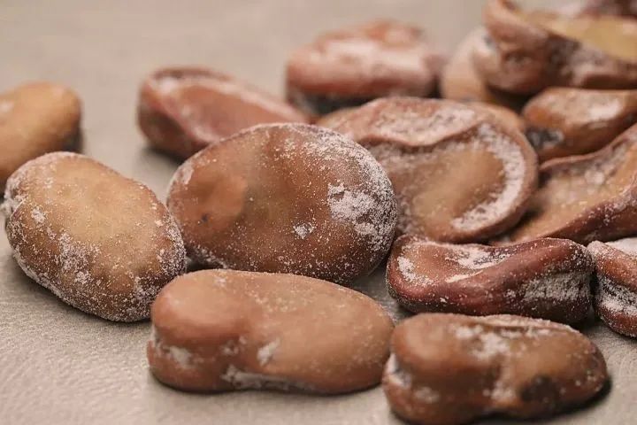 最外面的那层白霜,可以慢慢舔,舔完后的五香豆,还有咸香味,蚕豆心有些些软韧,特别适合闲时消遣!15