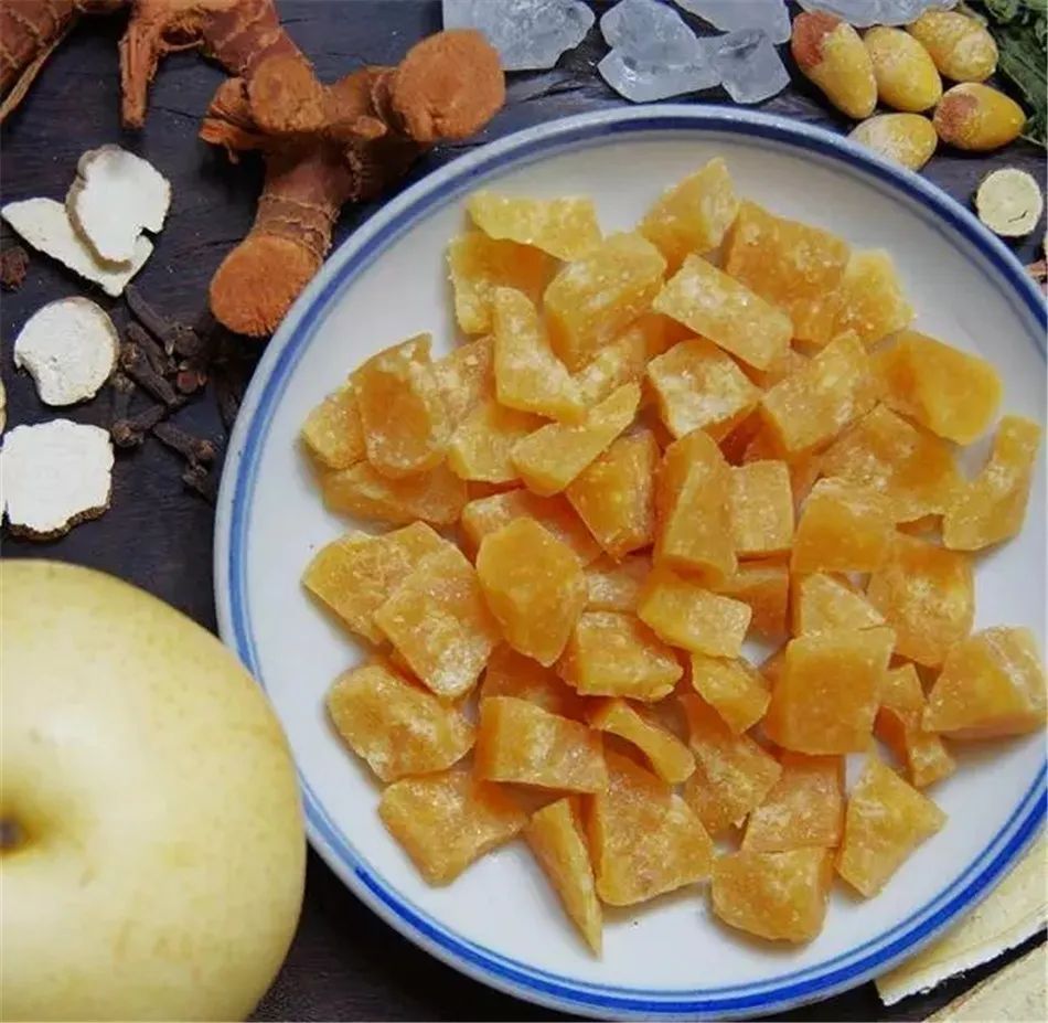 上海有首民谣:“一包冰雪调梨膏,二用药味重香料,三楂麦芽能消食,四君子能打小囡痨,五味子玉桂都用到,六加人参三积草,七星炉内炭火旺,八面生风煎梨膏,九制玫瑰香味重,十全大补有功效”。