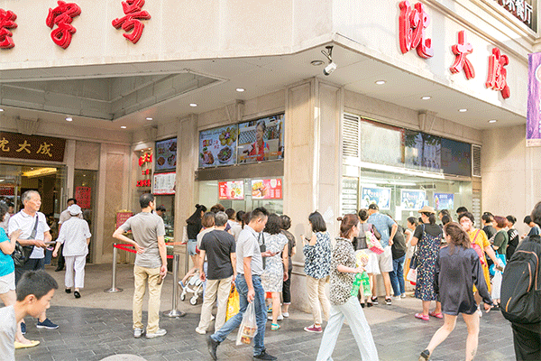 每年一到八月十五,杏花楼门前就准时排起长龙,不少爷叔阿姨排三、四个小时也不烦,可见杏花楼的月饼有多好吃。