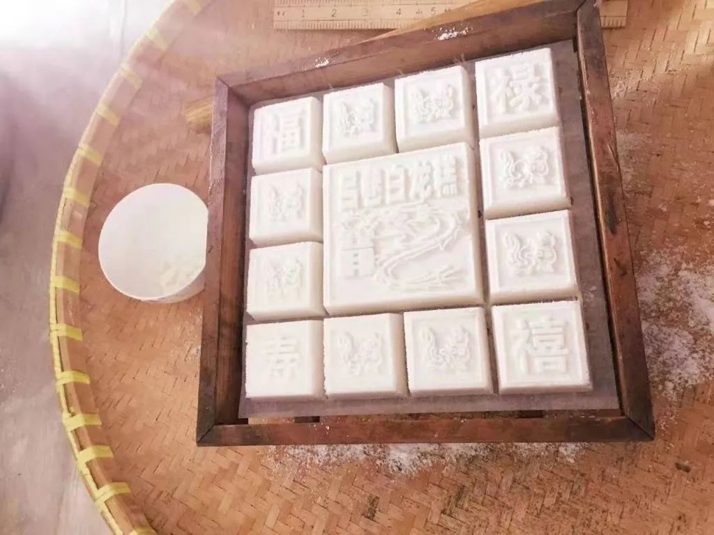 在金山农村有个老习惯,把农历年前的腊月廿三称“小年”,这时候是要做白龙糕的,做好糕的农户,是要把第一次蒸出来的糕用来祭灶神,有着“年年高”的寓意。